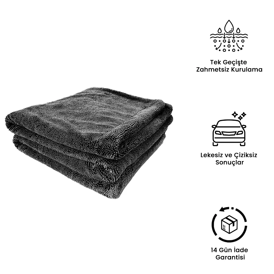 PullOff Kurulama Havlusu, standart mikrofiber bezlerden tamamen farklıdır. DryFusion-X teknolojisi sayesinde aracınızı tek hamlede, sıkmadan kurutmanızı sağlar ve lekesiz, parlak bir sonuç verir. Boyayı çizmeden suyu hızla emer, tiftiklenmez ve tüm yüzeylerle uyumludur. Üstelik çamaşır makinesinde yıkanabilir ve uzun süre performansını kaybetmeden kullanılabilir.